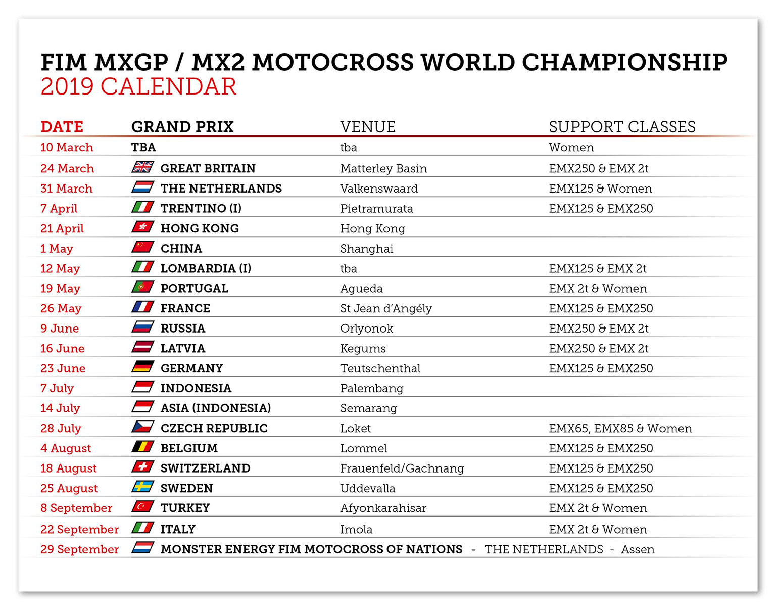 The season opening GP venue has yet to be announced but will take place in the second week of March and be joined by the FIM Women’s Motocross World Championship. Remaining as previously announced will be MXGP’s return to Great Britain at the Matterley Basin circuit, Valkenswaard for the MXGP of the Netherlands, and the MXGP of Trentino at Pietramurata before heading to the MXGP of Hong Kong and the MXGP of China in Shanghai.