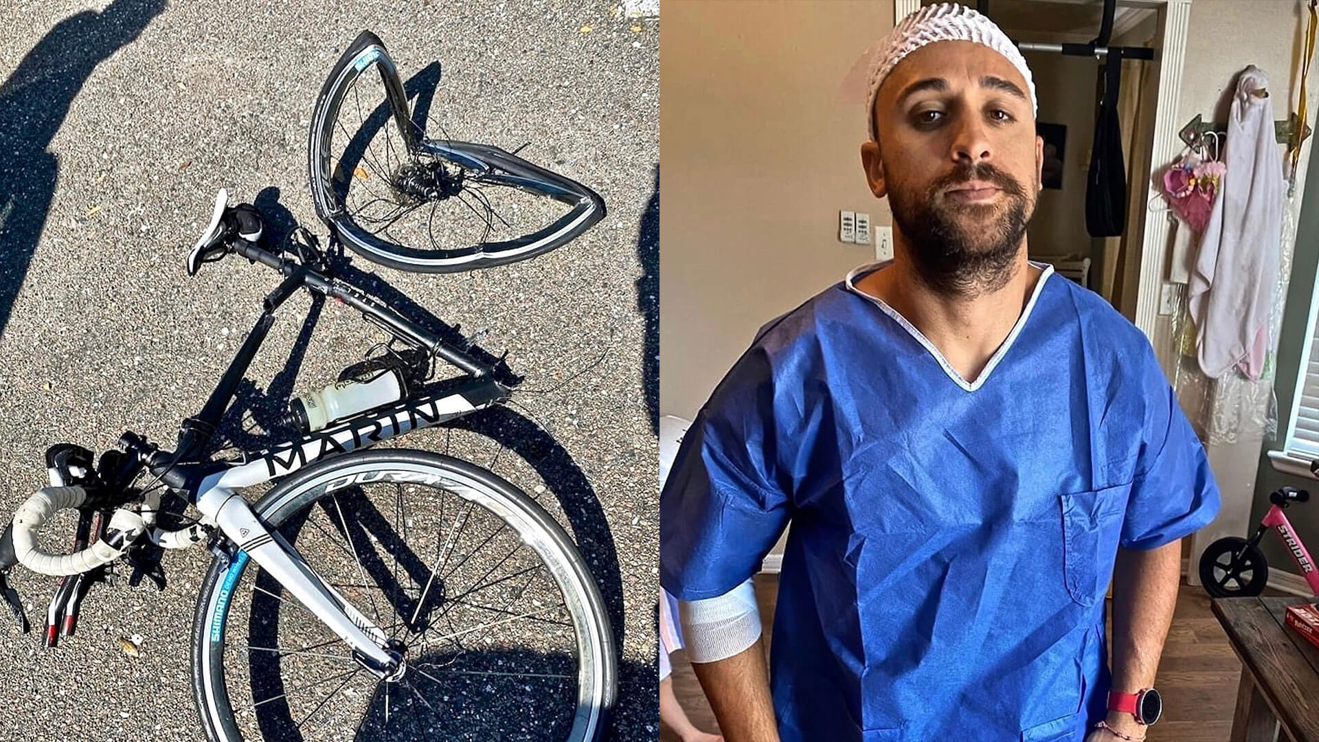 He was taken to hospital for head and arm injuries and was later released. He saisd: “I am home now. I have a huge cut and hematoma on the top of my head that required 10 staples. My elbow has stitches and my back/butt are covered in road rash. The driver was going approximately 70+ mph when the vehicle hit me. I am just so thankful to be alive right now. It was the scariest thing that has ever happened to me!”