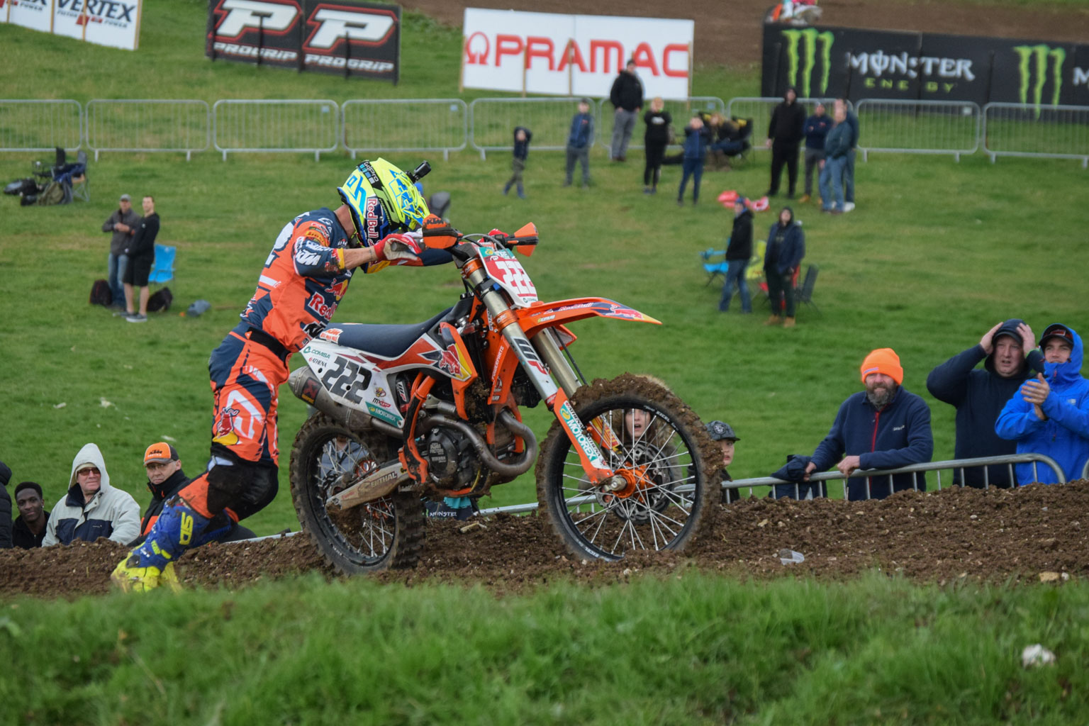 But in the very last minutes of the race, he slipped off and by the time he remounted, the Honda man had got by. Cairoli set off in high speed pursuit and went for a banzai move around the outside to take the win on the final corner.