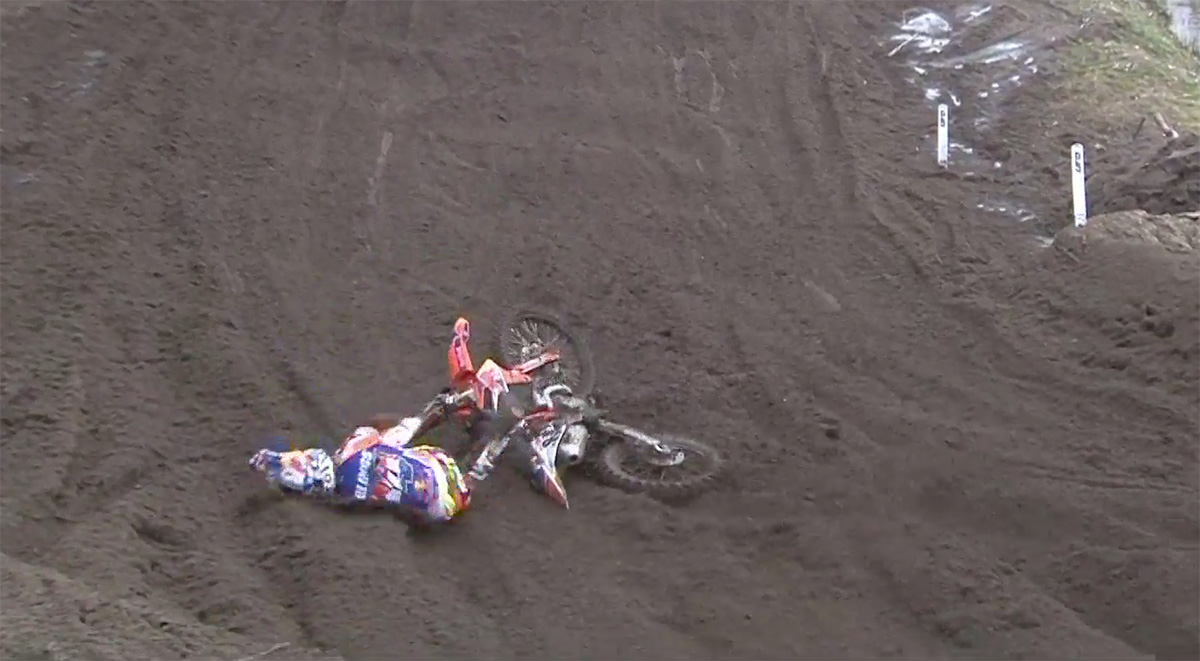Herlings said that he was detecting a problem with the front end of the bike while riding, which caused him to crash. It’s not the first time a factory KTM has had front wheel problems at Valkenswaard, as it also affected Tony Cairoli several years ago.