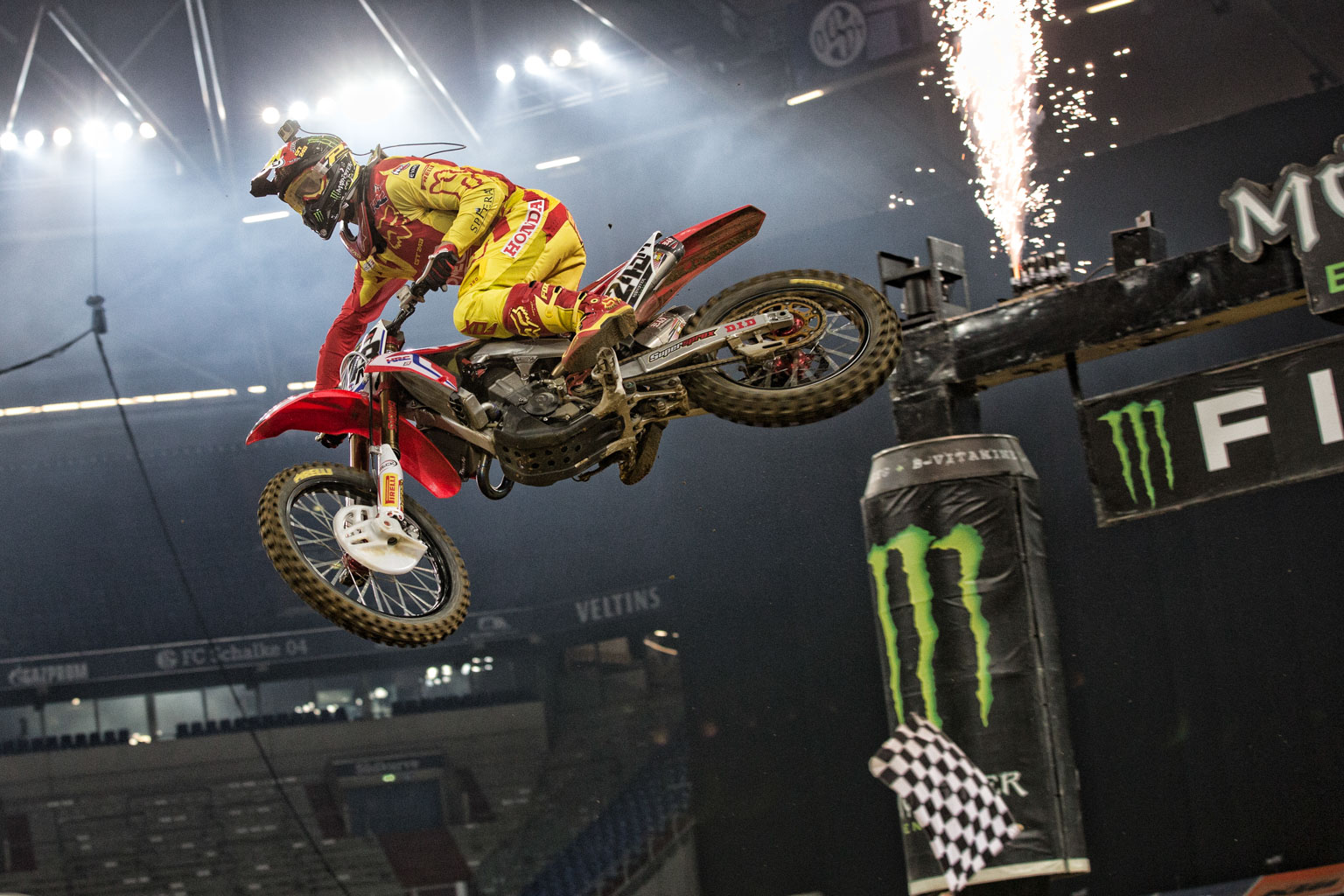 World champ Tim Gajser is OUT of the weekend’s Monster Cup in Las Vegas after re-injuring his shoulder in a crash at the SMX Cup in Germany on Saturday night. Gajser, who won the opening race, crashed out of the lead in race two. he remounted but fell again, hurting his shoulder. He raced the final moto in pain but will now rest as he bids to be fully fit for 2017.