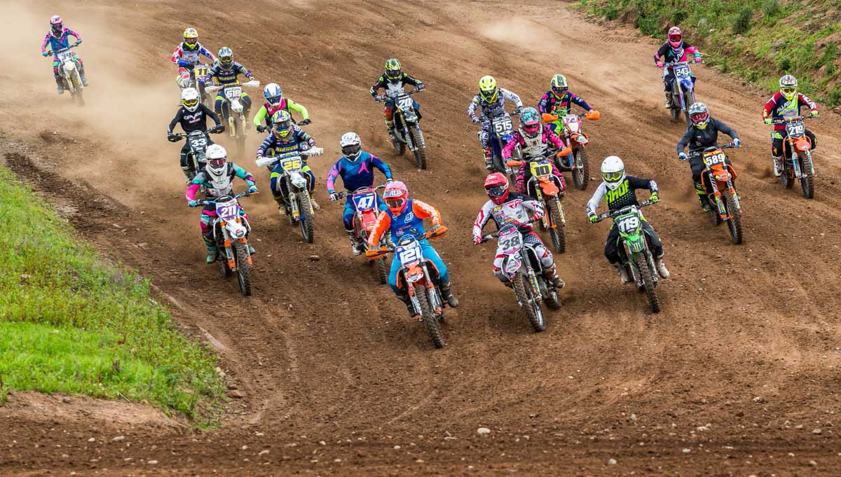 With six 15 minute plus one lap races over the two days, there was plenty of anticipation to see how this was going to shape up particularly on the rough, hard sand surface of the Norley track. Race 1 set the cat among the pigeons when Championship favourite Chelsea Gowland, Honda, fell on the first corner giving Beth Farmer, KTM, the BelRay holeshot prize and the lead. This was an unexpected start but Chelsea was not to be put off, she pulled out all the stops to work her way through the pack and chase for the lead but Beth was too far in front. Maybe it was the occasion or the pressure but Beth made two unforced errors and with a lap to go Chelsea was right on Beth’s tail and eventually pushed through to take an unexpected win. There were great battles behind them with Catherine King, Husqvarna, having a great battle with Georgia Ithell, KTM 125, for 3rd and 4th with Rhianne Barker, Yamaha, and rising star Leonni Tighe, Kawasaki, pushing her hard for 6th place.