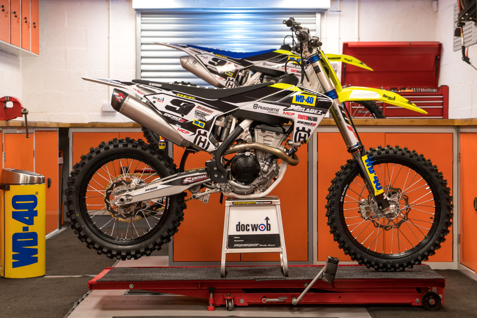 Gradie’s bikes were assembled at Doc Wobs Imports alongside bikes that will be ridden by French youngster Gaeten Le Hir in the FRO Systems PAR Elite team. His bike features lots of tuning parts and some factory kit KYB suspension, courtesy of Doc Wobs.