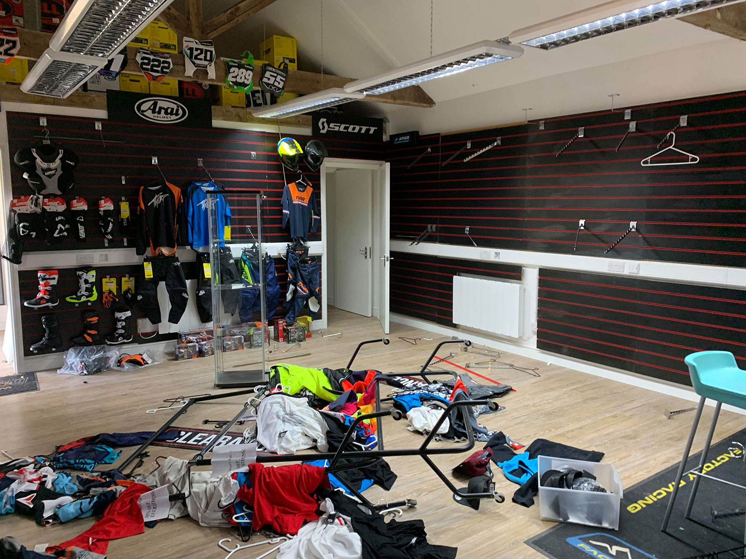 Well-known British motocross shop Onetwenty Motorsports has lost virtually all its stock after thieves broke in. Helmets, boots, goggles, and riding kits from brands like Bell, Thor, Arai, Shoei, 100%, Oakley and Alpinestars were lost in the raid.