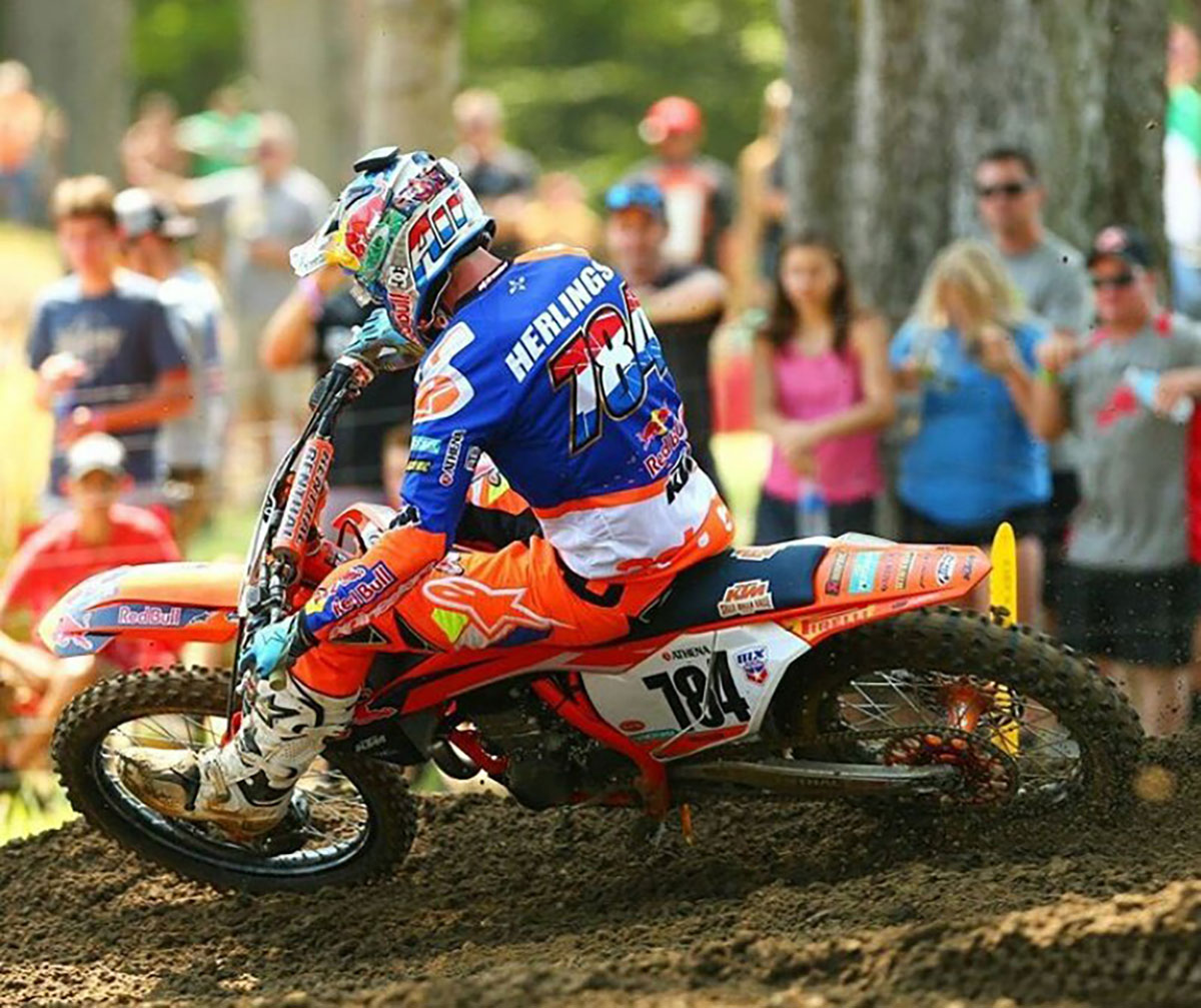 Race two saw Herlings taken down on the first lap and start second to last. He put on a stunning ride, passing every rider on the track in a truly heroic ride.