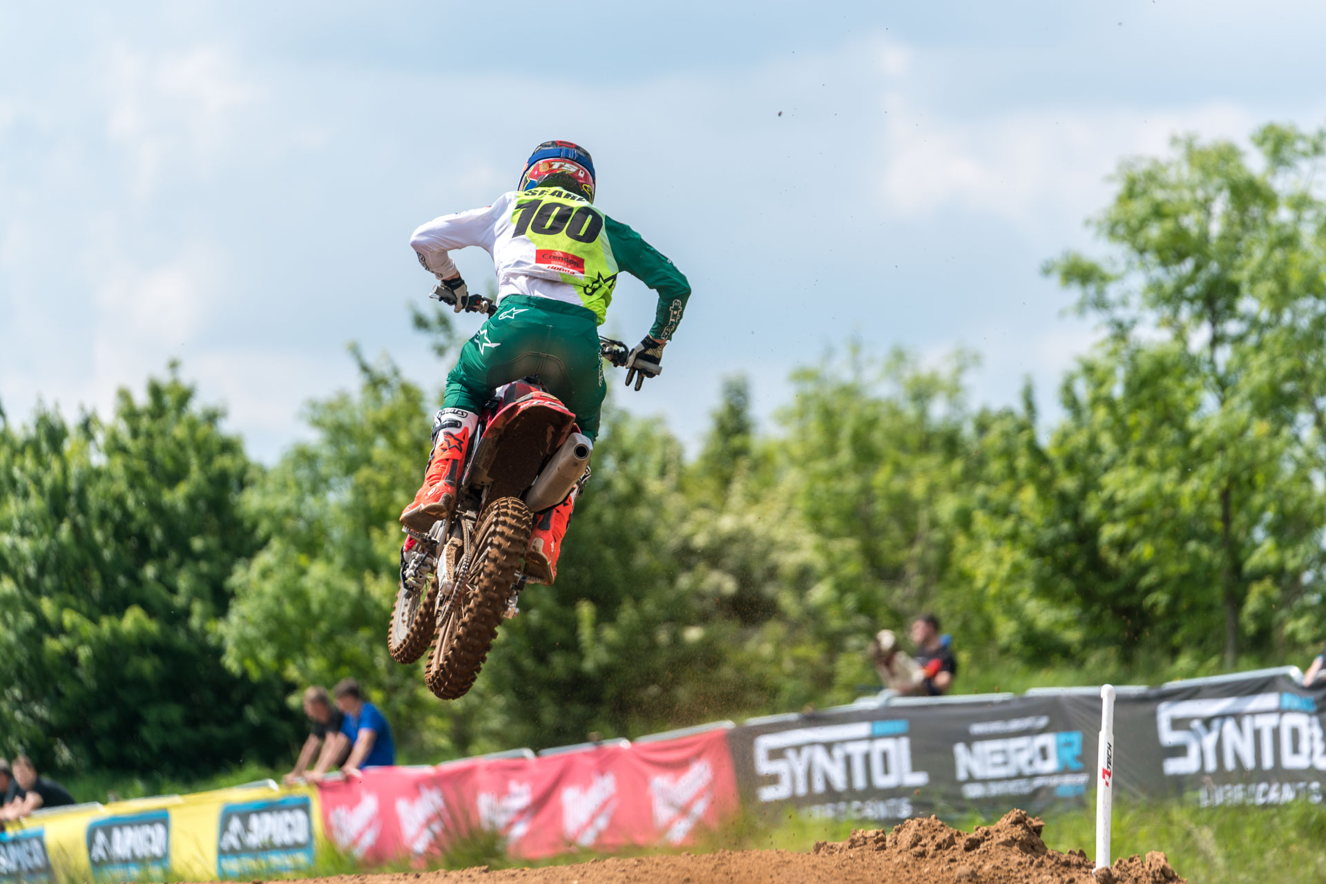 Defending champion Tommy Searle had been feeling ill in the run up to the event but decided to give it his best shot and ride, and then set the fastest lap in MX1 qualifying on his Honda CRF450R. As the temperatures rose rapidly and the track cut up significantly, Searle gated well and held fourth in the opening race but the conditions took their toll and he quickly dropped back to outside the top ten. It was decided the best course of action was for him to withdraw from the event, and focus on recovery for next week’s British championship where he holds the red plate.