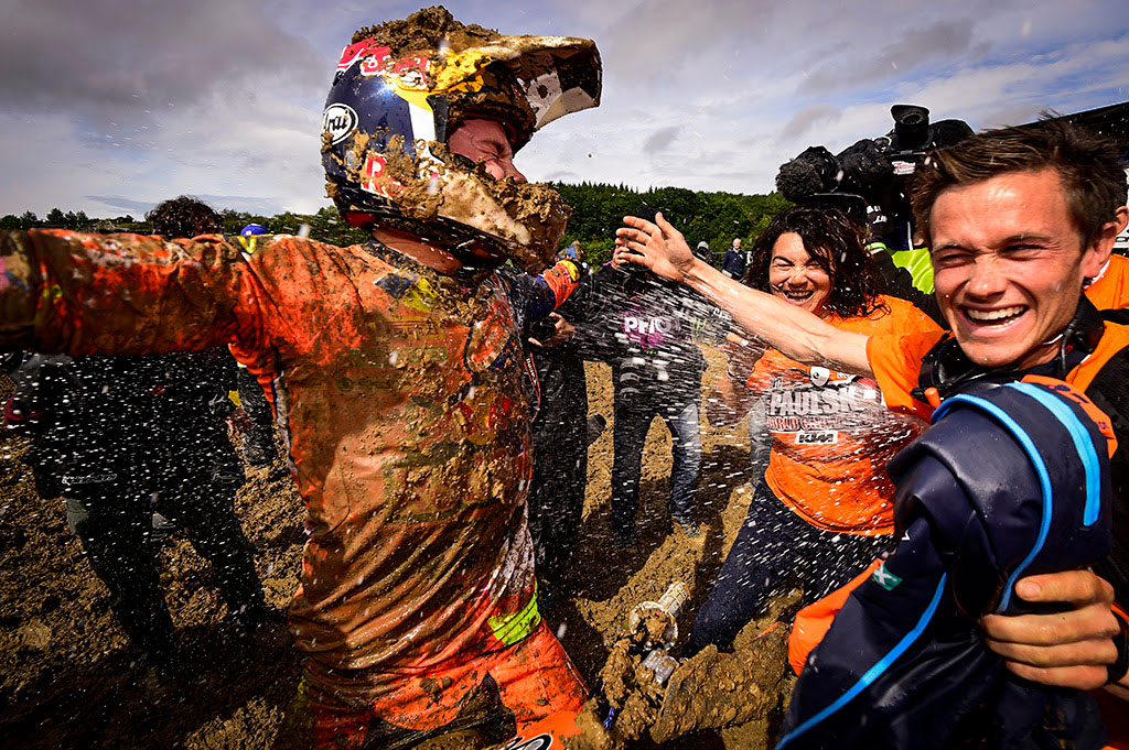 The final round of the 2017 FIM Motocross World Championship is complete from the Villars sous Ecot circuit in France. Thousands of French fans braved the weather to see the gladiators of MXGP and MX2 race the MXGP of Pays de Montbéliard. The best of the Grand Finale were Red Bull KTM Factory Racing’s Jeffrey Herlings and Rockstar Energy Husqvarna Factory Racing’s Thomas Covington. The celebrations didn’t end there though as Red Bull KTM Factory Racing’s Pauls Jonass was crowned the 2017 MX2 World Champion after the only Race 1.