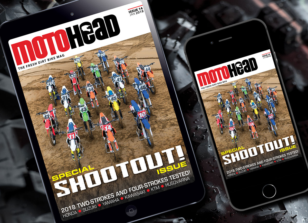 Issue 14 of the FREE MotoHead magazine App is here and ready for you to download right now! And it’s packed with the biggest and best ever Shooutout! We compare 125s, 250s, 350s and 450s in the most complete test ever. Bikes are weighed, put on the dyno and our crack test team including former world champ David Philippaerts and EMX 250 champ Morgan Lesiardo, along with MotoHead’s Dave Willet, put them through their paces. You can read MotoHead on your iPhone and iPad, and each of the issues can be downloaded for offline reading allowing you to take MotoHead everywhere! You can download the Apps right now from: