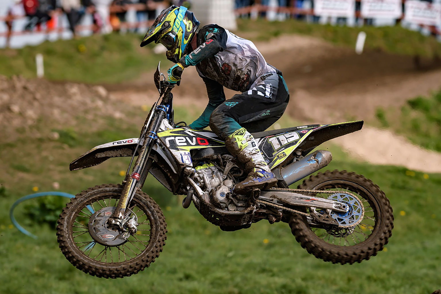 Mel, in his first full season back in acton after sustaining a career-threatening hand injury in 2015, qualified third in class less than a second off pole. Starting the opening moto near the head of the MX2 field but behind a lot of MX1 traffic, he quickly forced his way to the front of his class and controlled the race to finish first 250cc machine home.