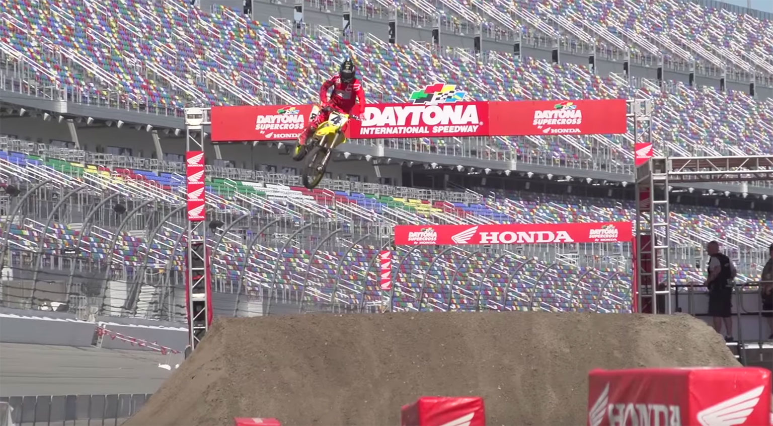 The GOAT Ricky Carmichael spins a few laps of the Daytona Supercross track ready for the action to start. Check out RC on the track, and this video of some of the other top Supercross men like Alex Martin and Adam Cianciarulo doing some laps.