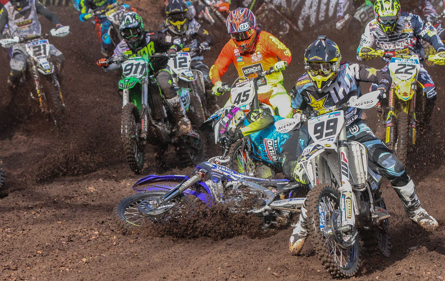 A year ago this weekend at the Hawkstone Park International saw former British champ Shaun Simpson go down hard at the start of the first 450 moto and get run over by the rest of the pack! Luckily he wasn’t too badly injured..