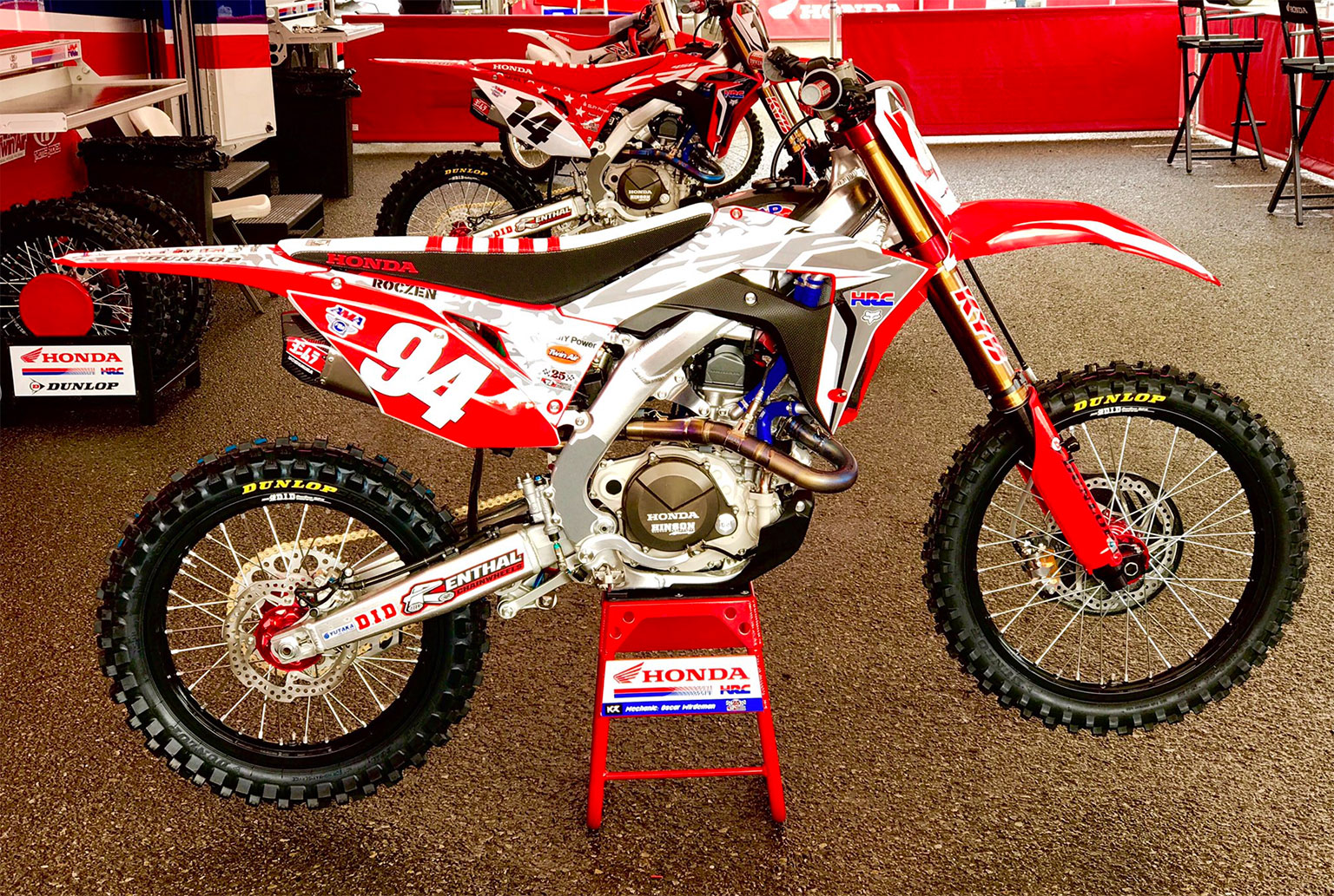 Roczen rides in the San Diego Supercross tonight. Check out his Honda CRF450 – complete with red plates – specially done up for Military Appreciation night.
