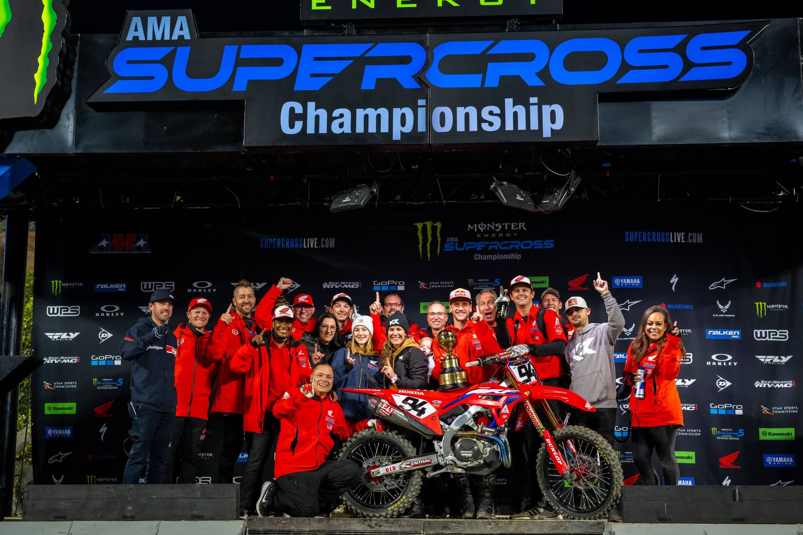 “Wow, what a day! For my first race in my new position as Team Manager, I couldn’t have asked for more. I really wanted to get this out of the way and get the ball rolling, and to do it this way just made it so memorable and great. First off, having Hunter switch coasts on short notice and have a strong ride was awesome. After the difficult start, he put his head down and started clicking off laps that just kept improving through the main event. Seeing his speed and fitness, it showed that he’ll be a podium guy every weekend. Chase and Kenny showed that they’ll be two of the best riders in the class again. Winning both of the heats was key for picking good starting spots, and the main event was incredibly exciting. I’ve had a lot of people ask if I was nervous about them racing each other hard, but I feel like they were giving each other room and are smart enough to not take each other out, especially at the first race. Both rode incredibly well, and Kenny never ceases to amaze me. Chase has really improved his game though, and I think that it won’t be long before he gets to stand on the top step. Even though we won the first race, we still have a long way to go, and we’ll just focus on doing the best we can every weekend.”