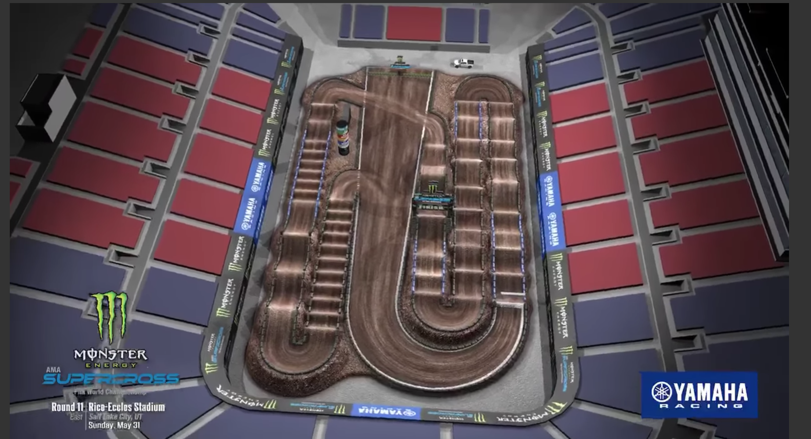 Here’s the first track that will be built in the Salt Lake City stadium for the weekend’s AMA Supercross return. There will be seven different version built, one for each race between Sunday and June 21.