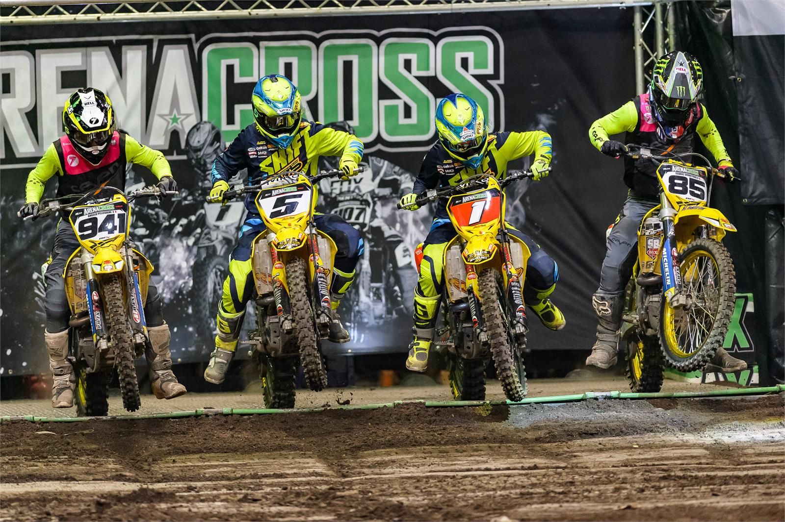 Never have the top six in the Pro class been separated by so few points as they get ready for the all-important round at Sheffield. There are just 12 points between first and sixth and, with two Brits in the mix, there is a very real possibility that the 2017 Arenacross crown could stay in the UK. Frenchman Cedric Soubeyras who rides for the British team RFX St Blazey MX is leading the championship by four points over his team-mate, Italian Angelo Pellegrini. Reigning AX champ Thomas Ramette (SR75 World Suzuki) is third, with two Brits – Adam Chatfield (Buildbase Honda) and Jack Brunell (Team Green Kawasaki) – in fourth and fifth. Florent Richier from France, riding for the Keystone Honda team, rounds out the top six.