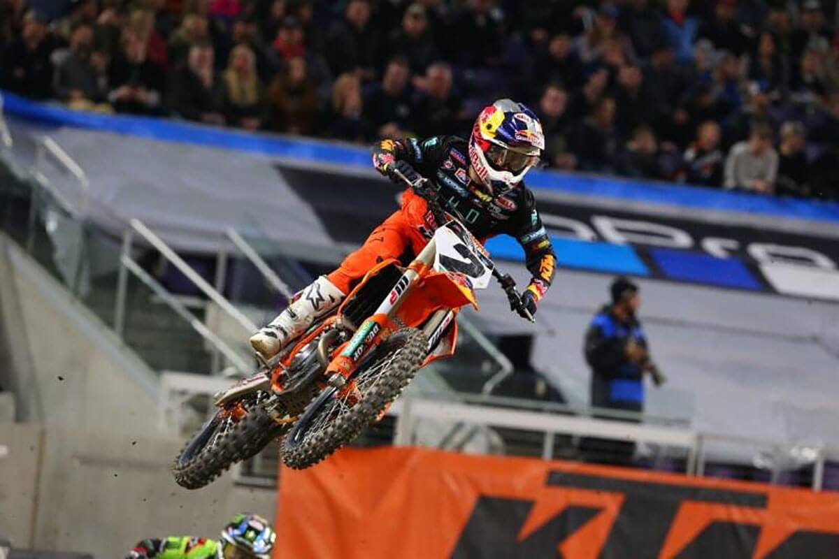 The weather was below zero outside but inside the U.S. Bank Stadium in Minneapolis, Minnesota the temperature was plenty warm for 47,421 fans because the Monster Energy AMA Supercross, an FIM World Championship racing was hot. In the 450SX Class Red Bull KTM’s Cooper Webb racked up his third win, the only rider in the class with more than a single victory after six rounds. The Minneapolis venue marked the beginning of the Eastern Regional 250SX Class series, where Monster Energy/Pro Circuit Kawasaki’s Austin Forkner put himself atop the results sheet and therefore the points lead.