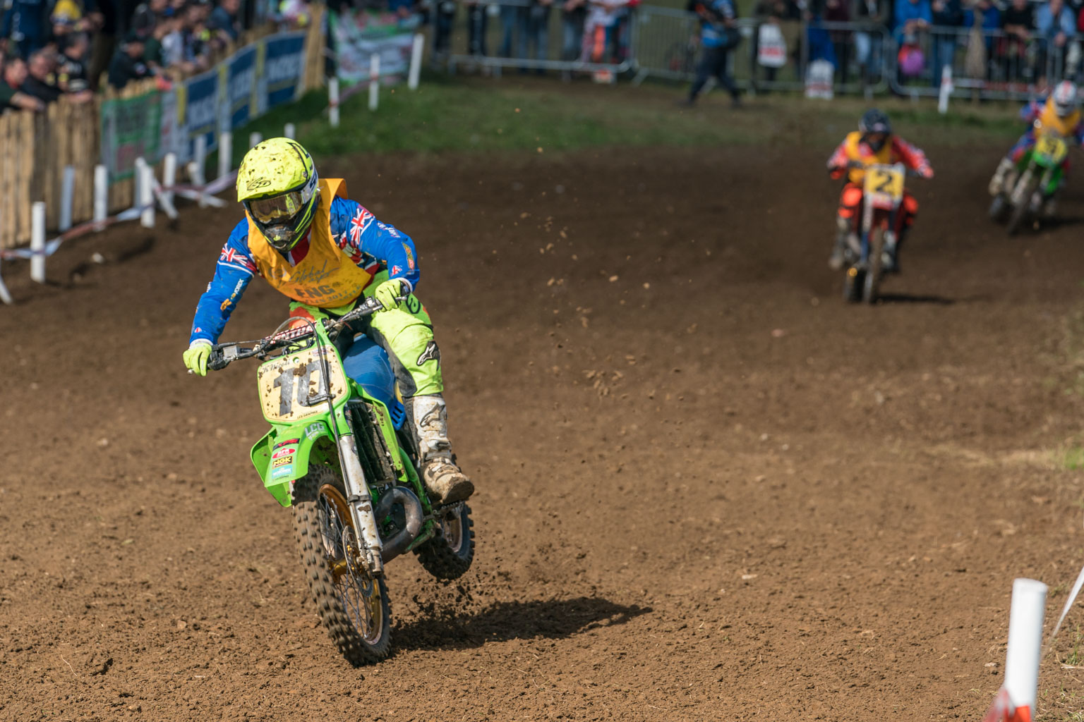 Team England of Kurt Nicoll, Brian Wheeler, Tom Church and Mark Eastwood lead the Evo class in the Vets MX des Nations at Farleigh Castle after the opening day. With around 600 riders competing in perfect conditions, the track roughed up well and provided great racing as Team USA held on to second place. Their team is Mike Brown, John Dowd, Doug Dubach and Todd De Hoop.