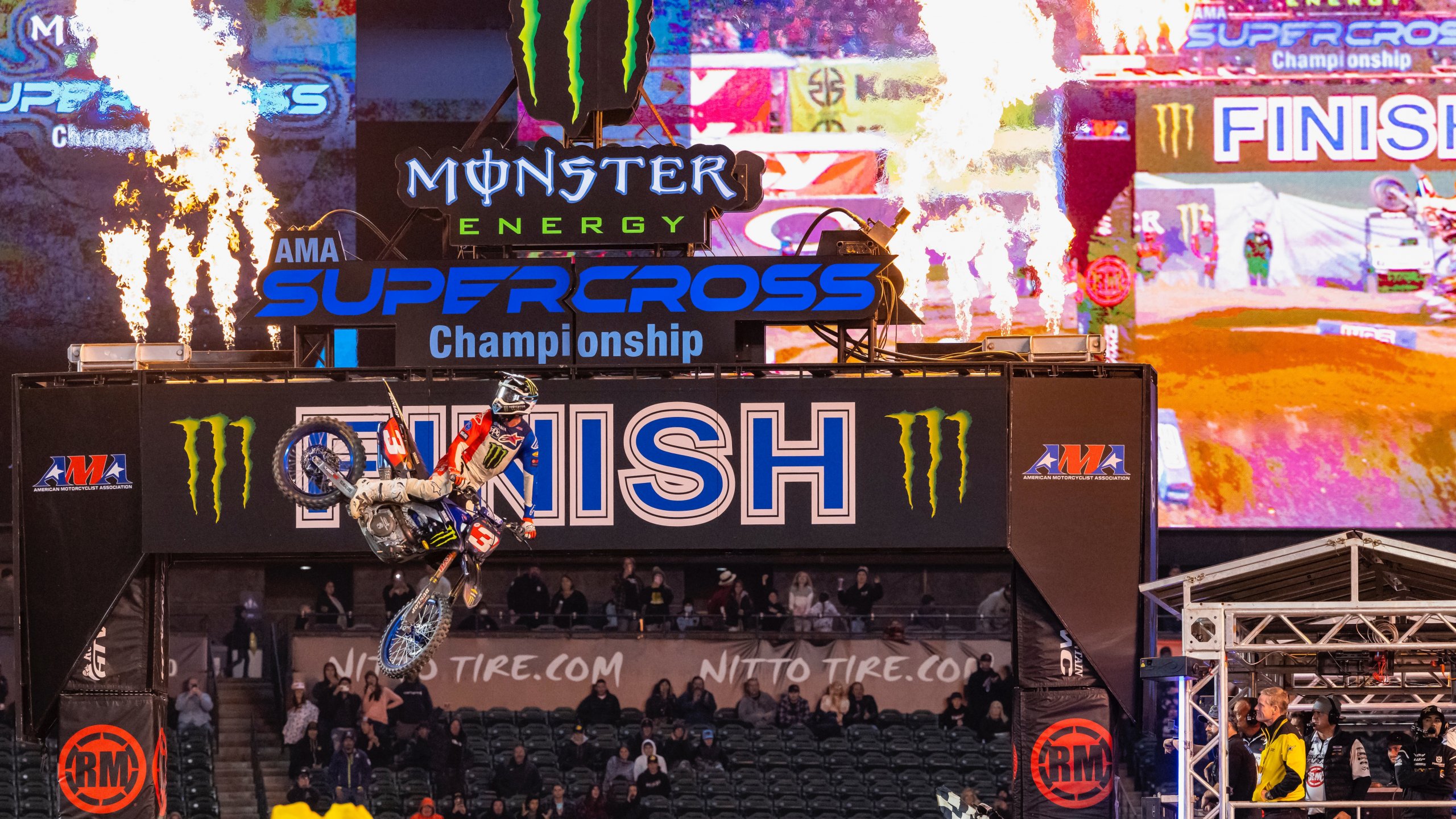 Monster Energy Yamaha Star Racing’s Eli Tomac scored his first win aboard the YZ450F to extend his 450SX points lead at last night’s Round 4 of the Monster Energy AMA Supercross Championship in Anaheim, California. Dylan Ferrandis executed another impressive charge to the front, ending the night fourth to make gains in the points standings at the Angel Stadium of Anaheim.