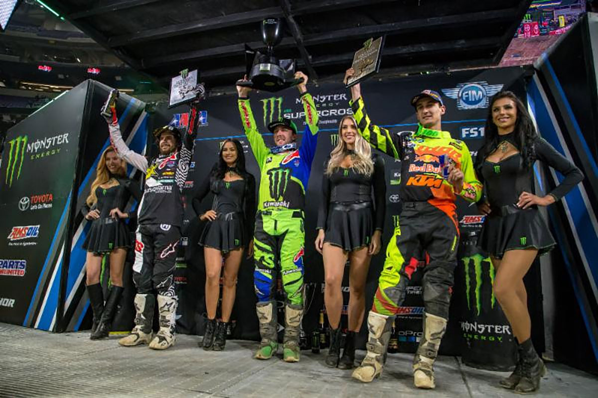 The Monster Energy Kawasaki of Eli Tomac captured his seventh win of the season and overall 450SX Class victory, in addition to the first-ever Triple Crown Championship, which was awarded to Tomac who finished with the lowest overall Olympic-style score in the three-race series.
