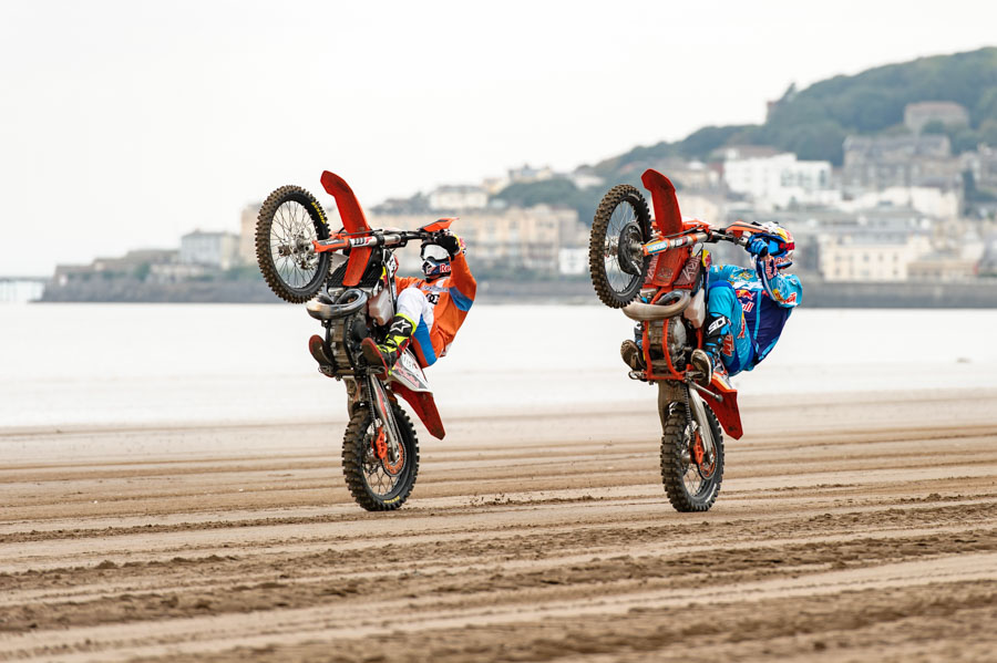 The Weston Beach race starts now! Today saw triple world 500 champ Dave Thorpe coached riders on how to tackle the gruelling course, then blast off at 140mph on the Africa Twin Adventure bike he’ll be racing on Sunday. Stunt god Robbie Madison and extreme star Jonny Walker popped some monster wheelies and performed a few jumps on the freshly-prepared course. And the media had a field day taking pics of the action and doing interviews. The real action starts tomorrow! Pics by Nuno Laranjeira