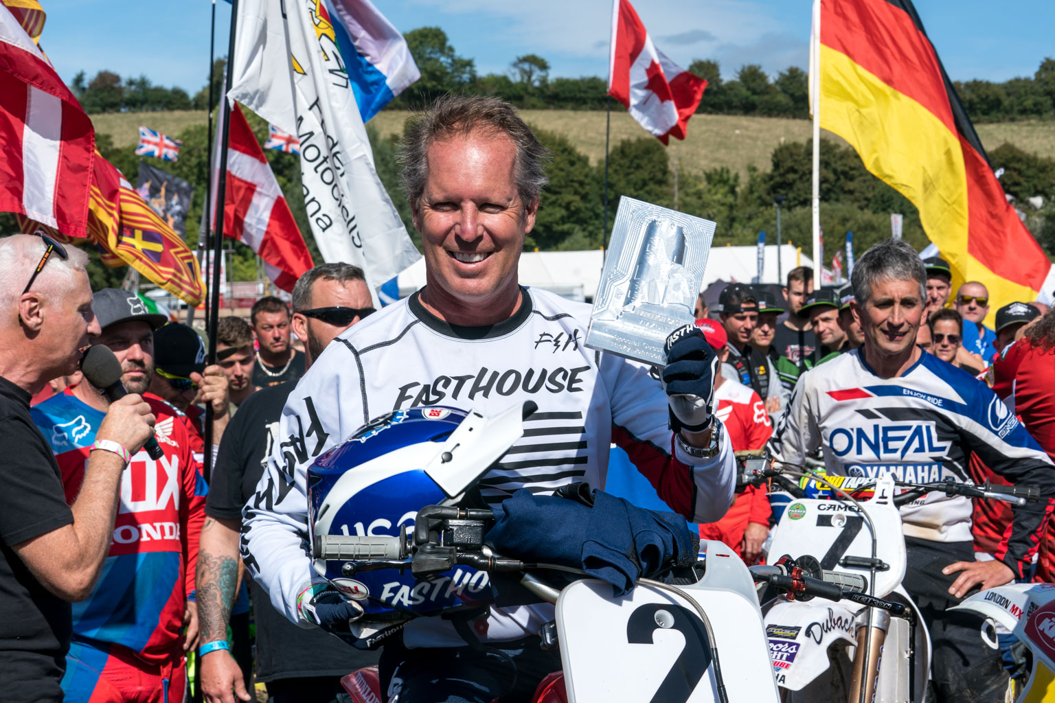 The biggest star of 1980s motocross Ricky Johnson was the guest of honour at the weekend’s 10th anniversary VMXdN Vets Nations at Farleigh Castle and was a massive hit with the crowd as he met hundreds of fans and signed autographs for hours. And he presented the trophies to riders in all the classes, told tales of racing and posed for lots of selfies.