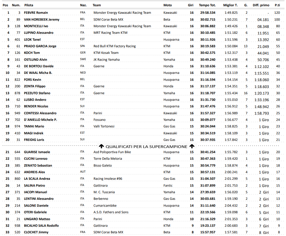 Romain Fevbre dominated the final Italian International championship at Mantova, winning the MX1 race and the combined MX1 and MX2 superfinal and taking the championship.