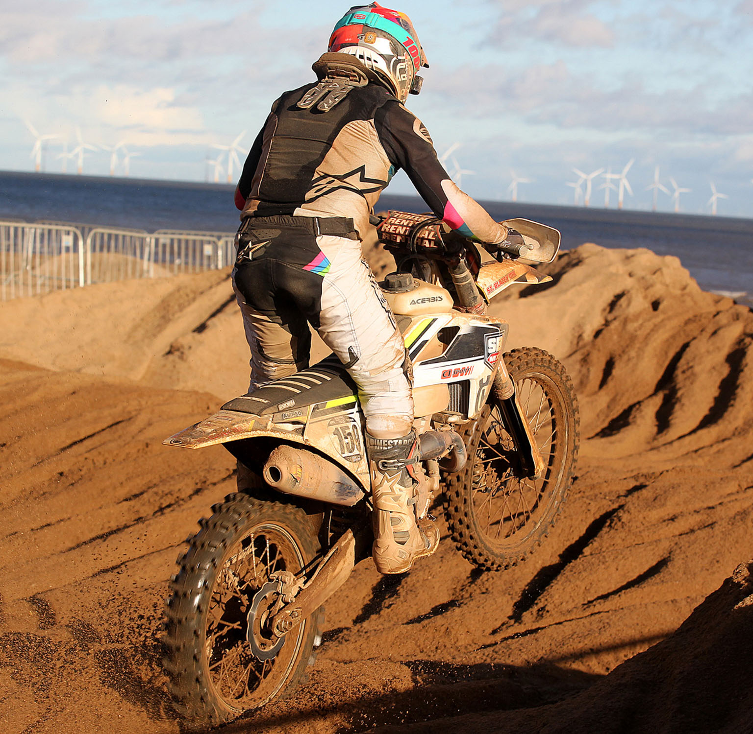 What a weekend it was to be for young West Country Beach racing star Todd Kellett. After finishing 5th in the Red Bull Knockout event in Holland on Saturday, Todd then dashed back to the UK in order to make his debut in the AMCA Skegness Beach contest. Arriving at the Lincolnshire venue at 2am on Sunday morning, he then somehow found enough stamina to take the win and a nice £1,000 cheque away from the big 3 hour Skeggy race, this despite losing the use of his Husqvarna clutch from around midpoint onwards of the rough, tough sandblast! Once again overall the Skegness meet was another massive success, this year attracting an entry of nearly 500 riders throughout and receiving its normal warm reception from local organisations and townsfolk. Whilst Todd took the win in the main event, other victors were to be James Wainwright (Clubman), Keith Staines (Clubman Vets), Harry Walker (Quads), Alun Davies/James Ferguson (Sidecar) and Alex Owen (Solo Vets).