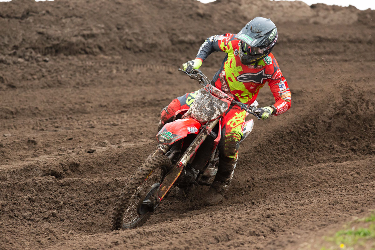 Harry Fletcher one the muddy first race on the clubman MX1s and backed that up with a fourth and second for the overall win from Guy Price who was never out of the top three, and race two winner Aiden Christie as the winner of the last race, Jack Craggs failed to score in his other two races.