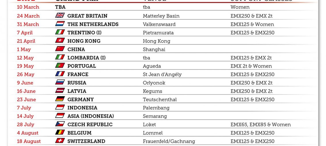 The season opening GP venue has yet to be announced but will take place in the second week of March and be joined by the FIM Women’s Motocross World Championship. Remaining as previously announced will be MXGP’s return to Great Britain at the Matterley Basin circuit, Valkenswaard for the MXGP of the Netherlands, and the MXGP of Trentino at Pietramurata before heading to the MXGP of Hong Kong and the MXGP of China in Shanghai.