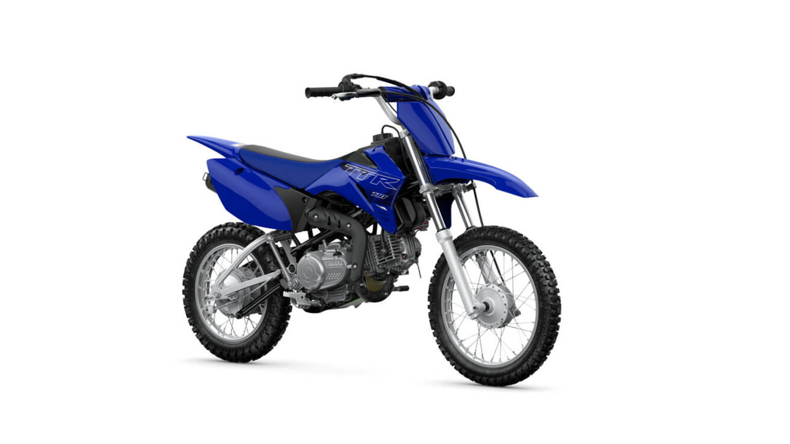 Driven by an economical and reliable electric start 4-stroke engine with a 4-speed semi-automatic transmission, the TT-R110 is the perfect bike for kids who are starting out as well as those who are moving up from one of Yamaha’s 50cc bikes. Long travel suspension gives a smooth ride over bumps, and with its off road tyres, tough and lightweight bodywork and compact chassis, the TT-R110 provides endless fun for kids of all ages. Finished in Icon Blue, the 2022 model features new graphics that demonstrates its Yamaha off road family heritage.