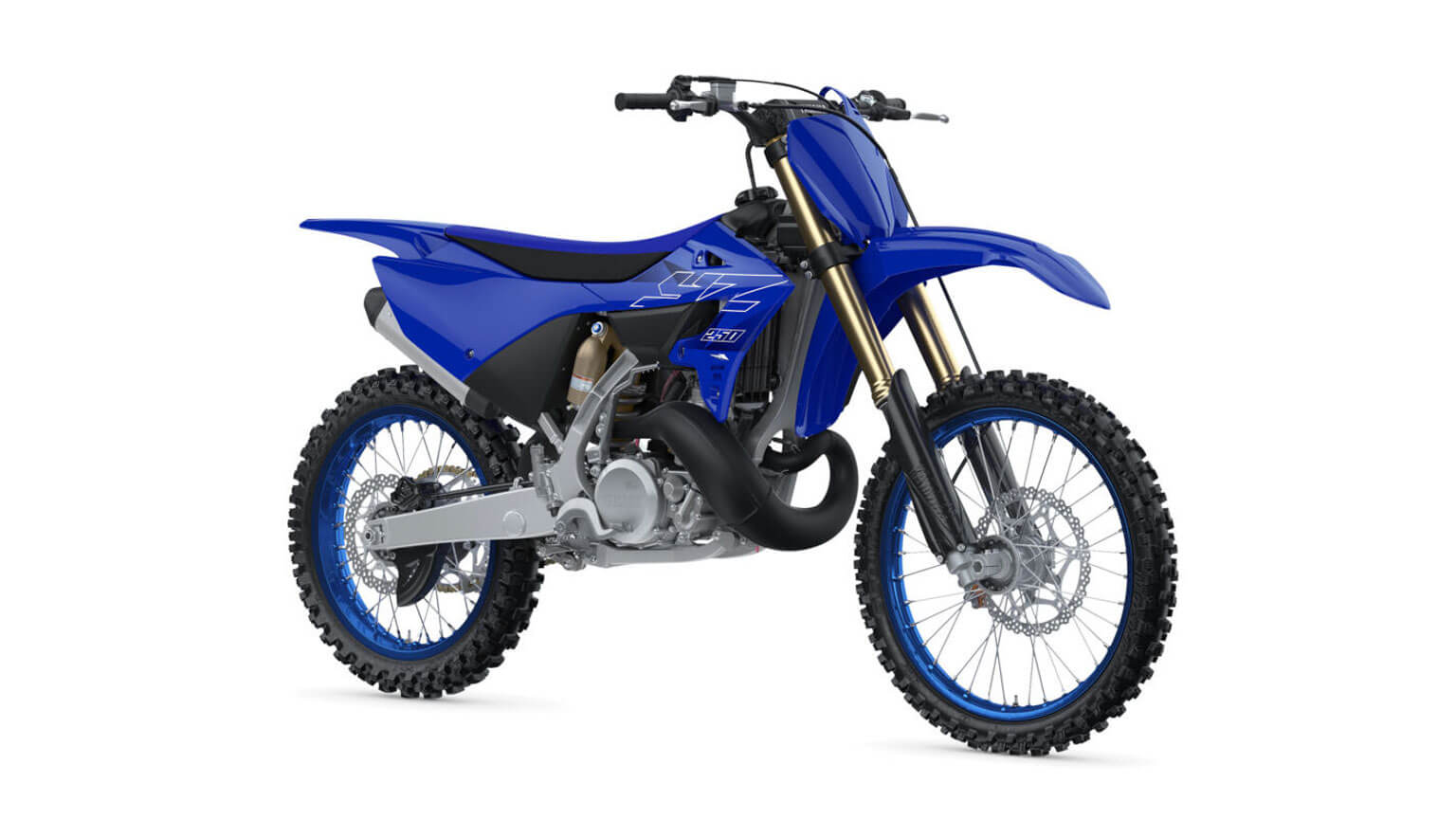 The 2022 YZ250 is finished in a dynamic and high quality Icon Blue duo-tone finish with durable in-mould graphics that are designed to withstand harsh motocross riding conditions.