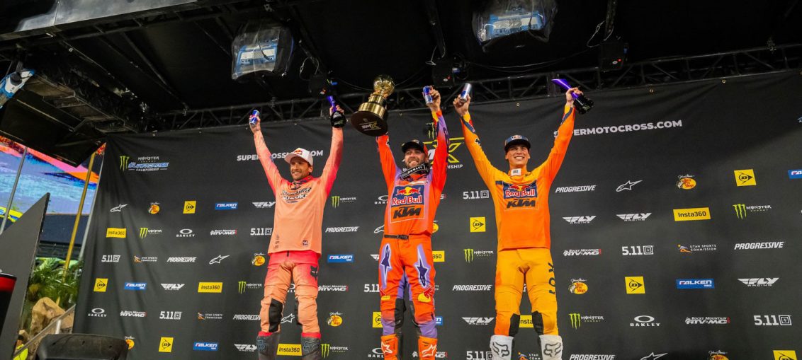 | The 2026 Monster Energy SMX World Championship got underway in front of a sold-out crowd inside Angel Stadium for the opening round of the Monster Energy AMA Supercross Championship. It turned out to be a memorable night for the elder statesman of the sport as 33-year-old Red Bull KTM Factory Racing rider Eli Tomac captured the 54th win of his legendary career in his debut with the team following a dominant performance in which the Coloradoan led every lap. |