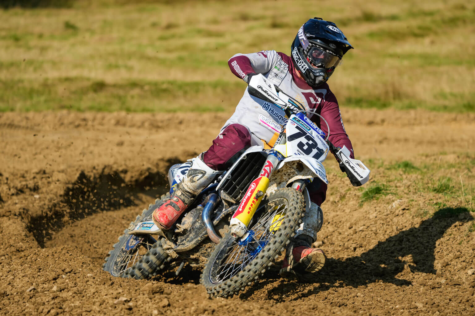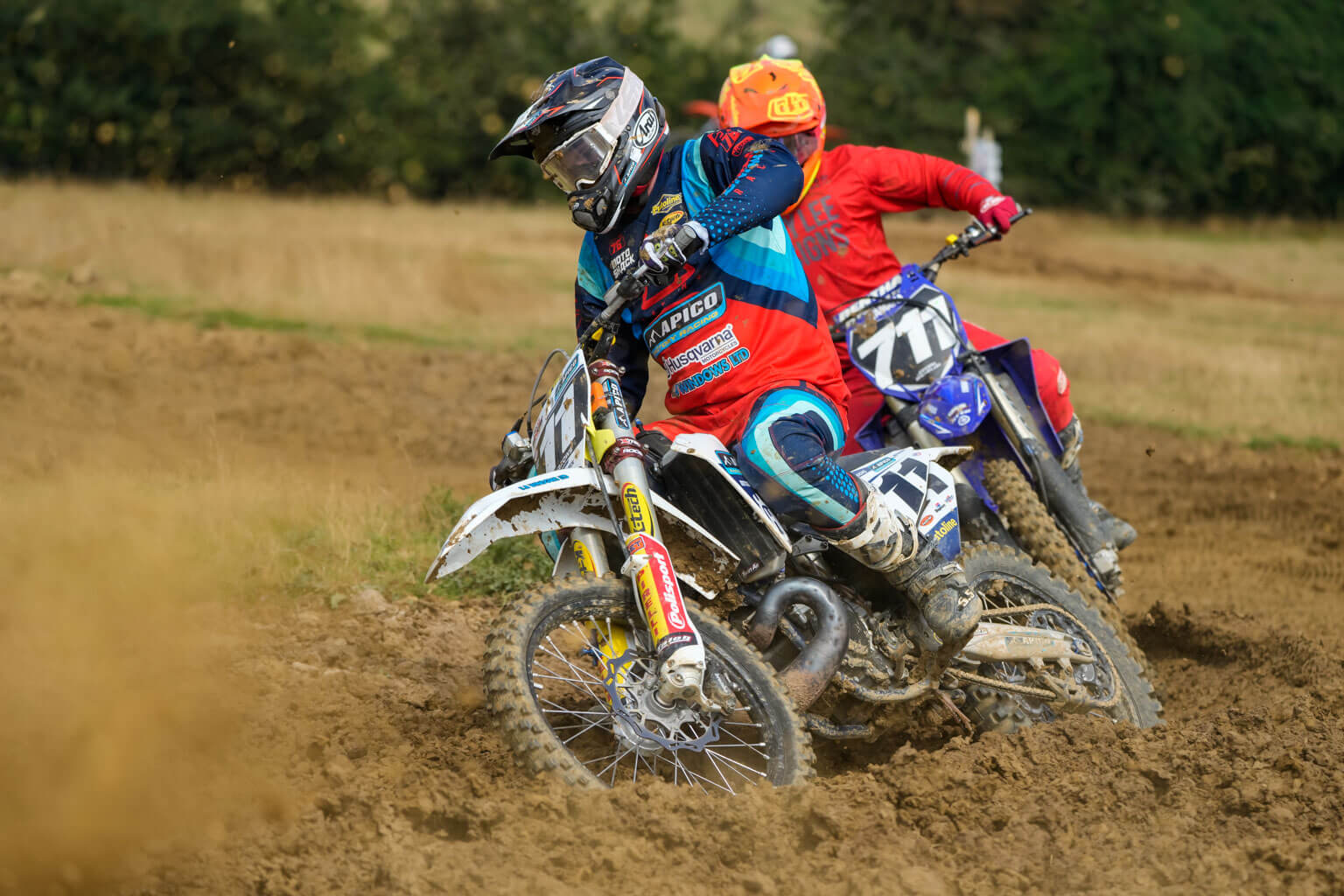 With Stuart and Matt qualifying first and second respectively, they were in the A group with the official ACU British Open 2-Stroke Title on the line. In race 1 the TC250 was somewhat alien to Stuart, though he still pulled the holeshot and was away with a comfortable lead. Unfortunately, Stuart had a technical difficulty where he lost his back brake on the fourth lap which later led to a small tip-off where he was passed and had to settle for second place. Matt’s luck wasn’t much better, he didn’t get the start, though he pushed through picking off riders making up over 10 places in 6 laps. Matt was looking strong to make up more positions when disaster struck having a massive crash injuring his shoulder and back as well as damaging his bike which allowed him to finish the race.