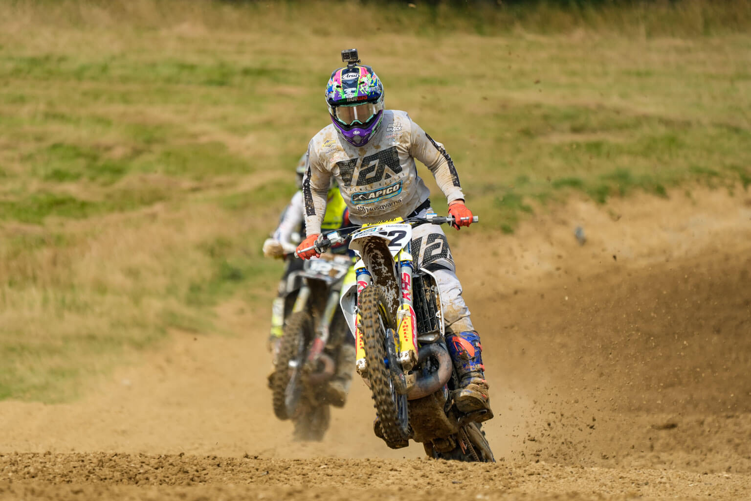 The final Apico 2 Stroke Open Class race saw Apico riders Stuart and Matt go through the Apico Holeshot practically side by side. Both riders managed to holeshot all four British 125 & Open 2-Stroke A races between them over the weekend. After putting in another strong performance both riders finished as they’d started in 1st position for Stuart and 2nd for Matt. This gave Stuart the overall and official British 2-Stroke Open Title and Matt finished 4th overall in the class.