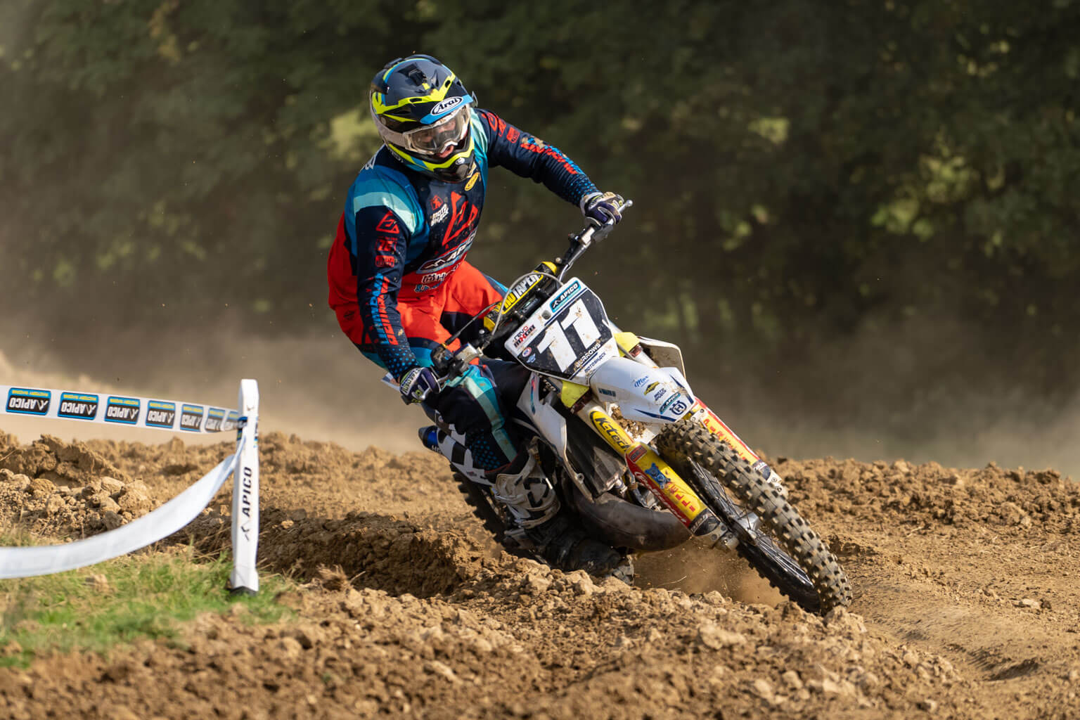 After one race in between classes, Stuart was back into the Apico Open 2-Stroke race with Matt. A last-minute change of the transponder from the FC450 to the TC250 meant Stuart rolled up to the gate as it dropped, starting in first gear, missing the jump. Matt managed to pull the holeshot again and pushed on to the halfway mark before being overtaken by Stuart. A great show of strength from Matt, who we thought may not ride due to Saturday’s big crash. The Apico Husqvarna riders finished 1,2 with Stuart leading the charge into the final race, the Open 2-Stroke title within his grasp.