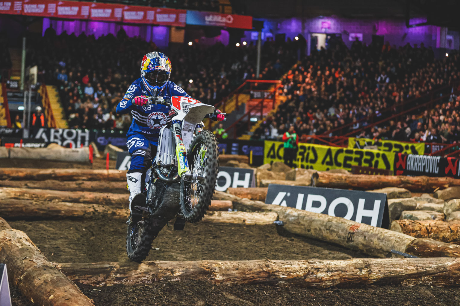 Making it three wins from three starts, along with securing the SuperPole hot lap, the Husqvarna Factory Racing star took the overall victory on the night in Newcastle. Making it seven overall wins from seven starts, Billy ended his FIM SuperEnduro World Championship campaign undefeated, while also clinching his fourth consecutive world title indoors.