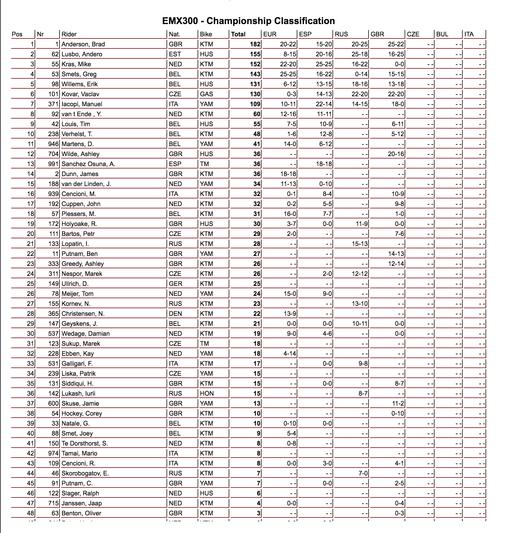 Battling Brit Brad Anderson still holds the lead in the EMX300 championship despite only finishing eighth in today’s opening moot in the Czech Republic.
