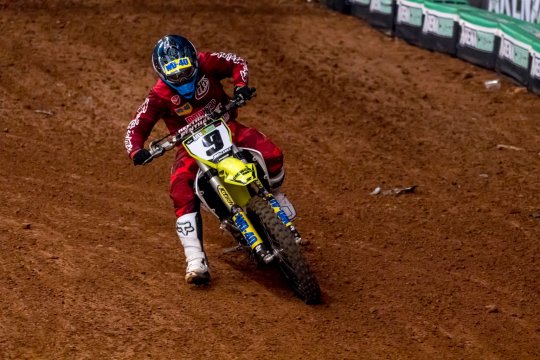 In the MX2 race Prado, who says he’s not fully fit, took his customary holeshot and cleared off at the front from red plate holder Thomas Kjer Olsen and Jago Geerts.