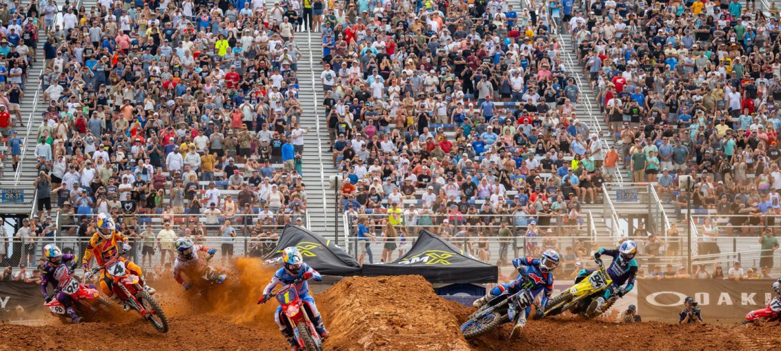Team Honda HRC Progressive's Jett Lawrence kicked off the postseason with a victory at Playoff 1 of the 2025 SMX World Championship™. The two-moto format of the postseason was interrupted by lightening near the zMAX Dragway at Charlotte Motor Speedway. Both classes scored their overall results based solely on their