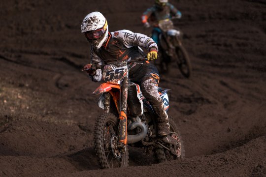 Flying Dutchman Jeffrey Herlings lost the MXGP qualifying race with a crash and a front wheel problem at a freezing Valkenswaard in Holland. The KTM man snatched the led from holeshot man Jeremy Van Horebeek on the first lap, chased by Gautier Paulin, Tim Gajser and Shaun Simpson with red plate holder Tony Cairoli eighth, although he quickly demoted Clement Desalle for a place and chased the leaders. Van Horebeel tried to keep Herlings in sight as Gajser put the pressure on Paulin for second.