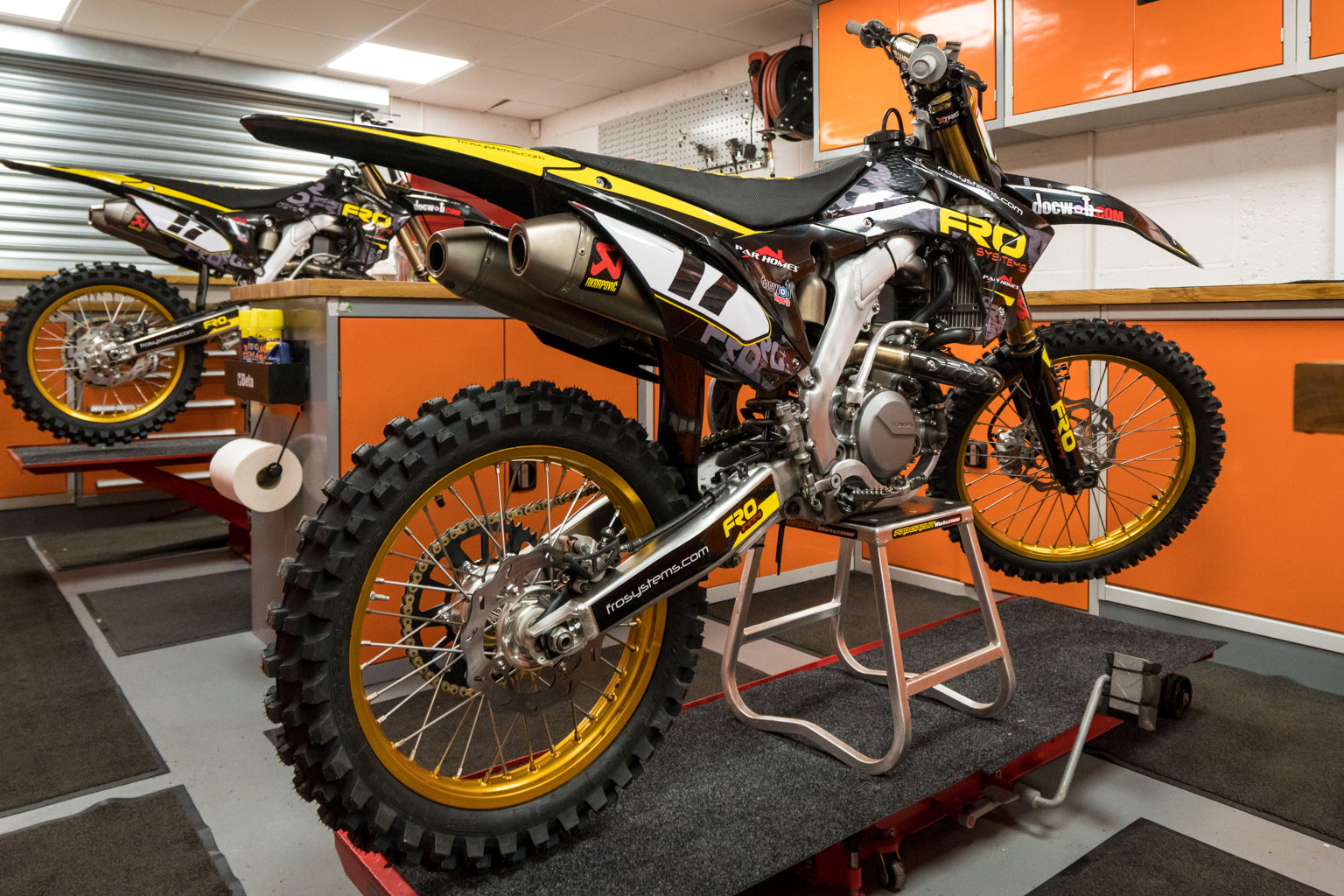 Former GP and AMA mechanic Rob “Doc Wobs” Walters has helped French youngster Gaeten Le Hir onto some cool Honda CRF450s for the FRO Systems PAR Elite team in the UK Arenacross series that kicks off tonight. The pair of 2016 CRF450s were prepared by Wobs’ crew and feature factory kit KYB suspension, Akrapovic exhausts, X-Trig clamps, Doc Wobs titanium bolt kit and lots more. Check it out in Manchester tonight!