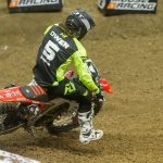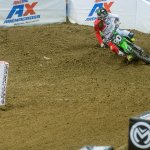 In the action-packed AX Lites East Class, Garrett Marchbanks started off his Road to Supercross journey by taking the holeshot in the Main Event ahead of Jerry Robin and Heath Harrison. On the second lap, Marchbanks left the door open and Harrison quickly took the lead with Robin in tow. The battle between Harrison and Robin continued until lap 12 of 15 when Harrison and Robin made contact, which forced a mistake by Robin and allowed Harrison to take over the lead while Marchbanks continued charging ahead. On the last lap, Harrison’s costly mistake handed Marchbanks the win and first Main Event victory ahead of Harrison in second and Isaac Teasdale in third.