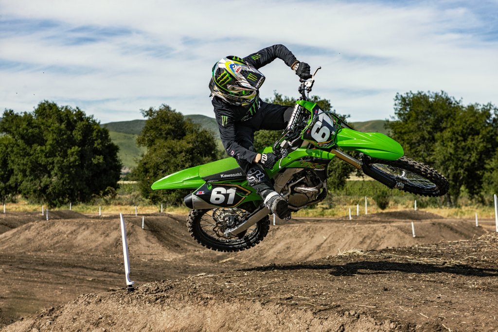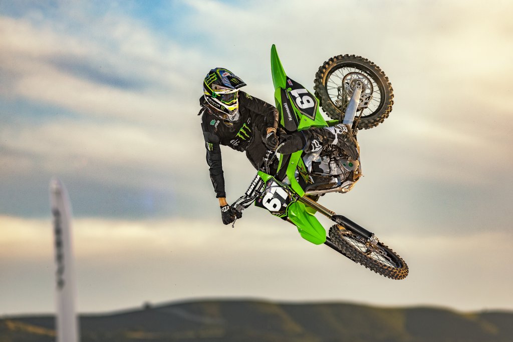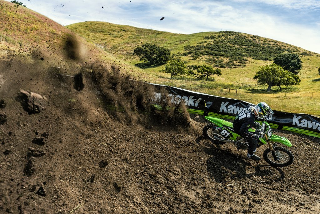 | With a comprehensive list of new features and key updates, the 2020 model KX250 motocross machine has been unveiled. As the most powerful specification production 250cc four stroke off-roader ever available from Kawasaki, the expectations for podium topping results are understandably high. Continuing the theme of Supercross and motocross success, the new model year KX250 will reward the commitment shown by both professional and eager amateur riders taking the Kawasaki quarter litre capacity MX concept to the next level. Leading the new thinking – and as the result of Kawasaki official team feedback during the current season – the front fork (along with key engine and other chassis modifications) illustrates well how seriously the Akashi factory takes off-road sport. Chief among the front fork changes is the adoption of a Kayaba (KYB) assembly incorporating a new high-performance ø48 mm inverted coil-spring fork. The large-diameter inner tubes enable the use of large damping pistons, delivering smooth action and firm damping. Stiffer spring rates front and rear match the KX250’s increased power. The fork’s improved ability soak up bumps at the initial part of the stroke is complemented by increased firmness for handling large impacts and matched to the rear shock which features dual compression adjustability, allowing high-speed and low speed damping to be tuned separately. Speaking of power, the headlines are dominated by changes to the cylinder head group and induction modifications. Featuring finger follower valve actuation most recently adopted by the Superbike world championship winning Ninja ZX-10RR, this new direction facilitates a higher rev ceiling and more aggressive camshaft timing whilst reducing overall valve train weight. Boasting an increase in peak power of approximately 2.4 kW (3.3 PS), and performance focused on the high-rpm range, the stronger high-rpm engine gives riders a special advantage on the straights. Combined with a higher rev limit, it’s now easier to tie corners together for quicker lap times. Additionally, a revised airbox construction features a shorter (120 mm > 70 mm) tapered intake funnel, which contributes to increased high-rpm performance. Another KX250 innovative feature is the dual injectors – a feature since 2012 – utilising an injector downstream of the throttle valve (where injectors are located on standard FI systems). With that in mind, the larger diameter (ø43 mm >> ø44 mm) throttle body flows a greater volume of air, contributing to increased high-rpm performance, while repositioning the intake duct allows an even straighter approach for intake air. Finally, downdraft-style intake routing increases the intake air’s approach angle into the cylinder from 29.5º to 32.5º, improving cylinder-filling efficiency and contributing to increased engine power. These stand-out features – along with a long list of clever additional updates – combine to create the most powerful production KX250 four-stroke yet and a prime candidate for podium topping rides. Within an environment where not simply winning on track is of high importance but also meeting and exceeding the efforts of rival manufacturer’s, Kawasaki has once more taken the highly successful KX250 concept to an even higher level. As machines soon become available in dealers, committed and motivated Team Green enthusiasts, plus the huge number of Kawasaki focused off-road teams, will be able to experience first-hand the “most powerful yet” Kawasaki KX250. |