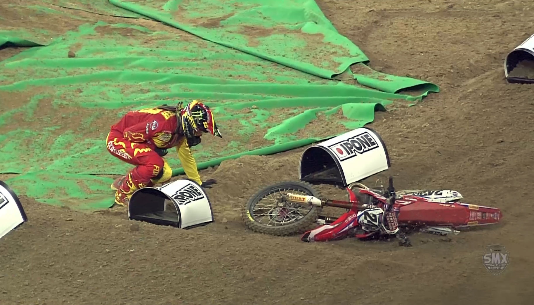 World champ Tim Gajser is OUT of the weekend’s Monster Cup in Las Vegas after re-injuring his shoulder in a crash at the SMX Cup in Germany on Saturday night. Gajser, who won the opening race, crashed out of the lead in race two. he remounted but fell again, hurting his shoulder. He raced the final moto in pain but will now rest as he bids to be fully fit for 2017.