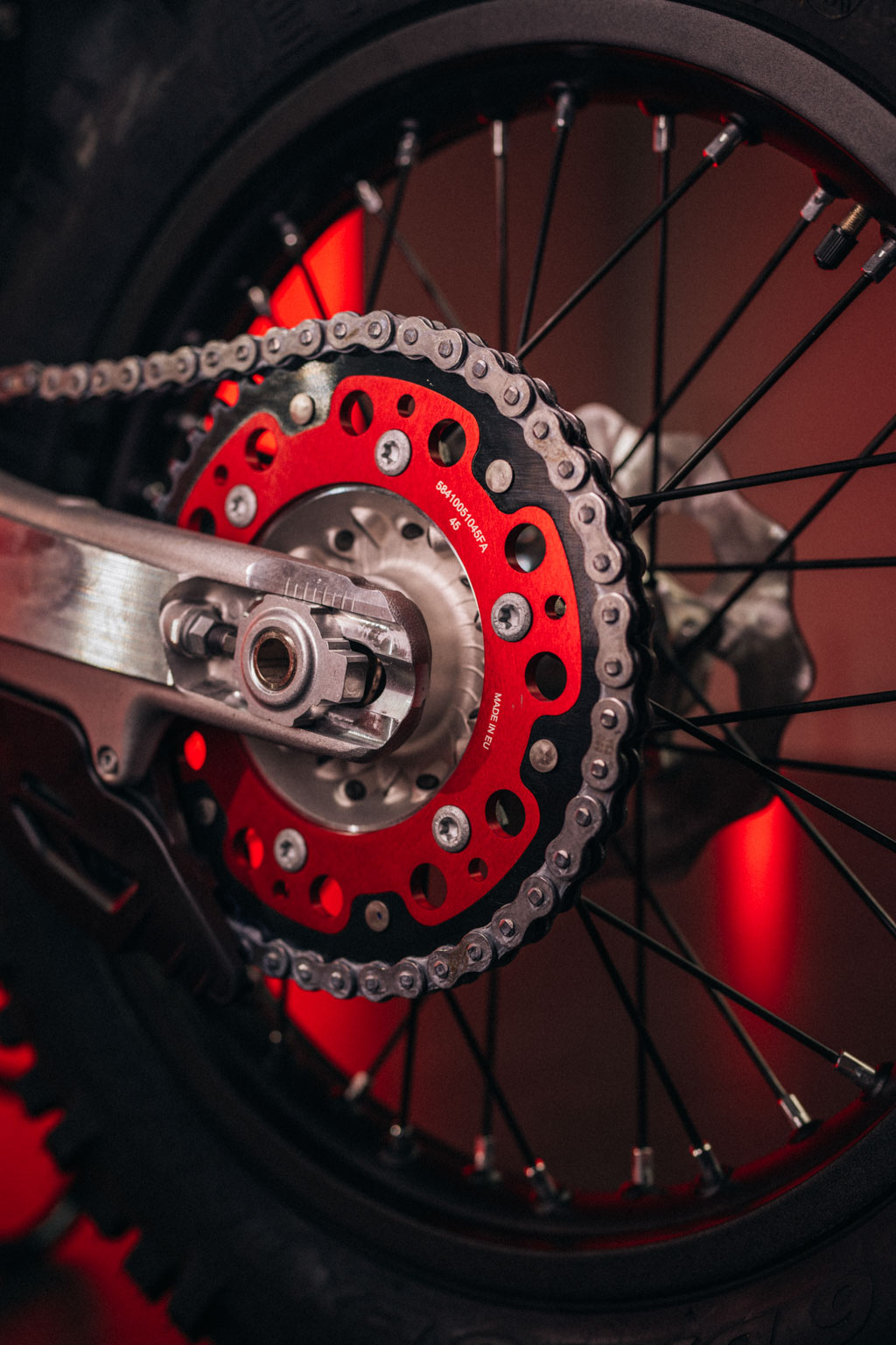 Red SUPERSPROX stealth rear sprocket – Provides exceptional durability and a splash of colour