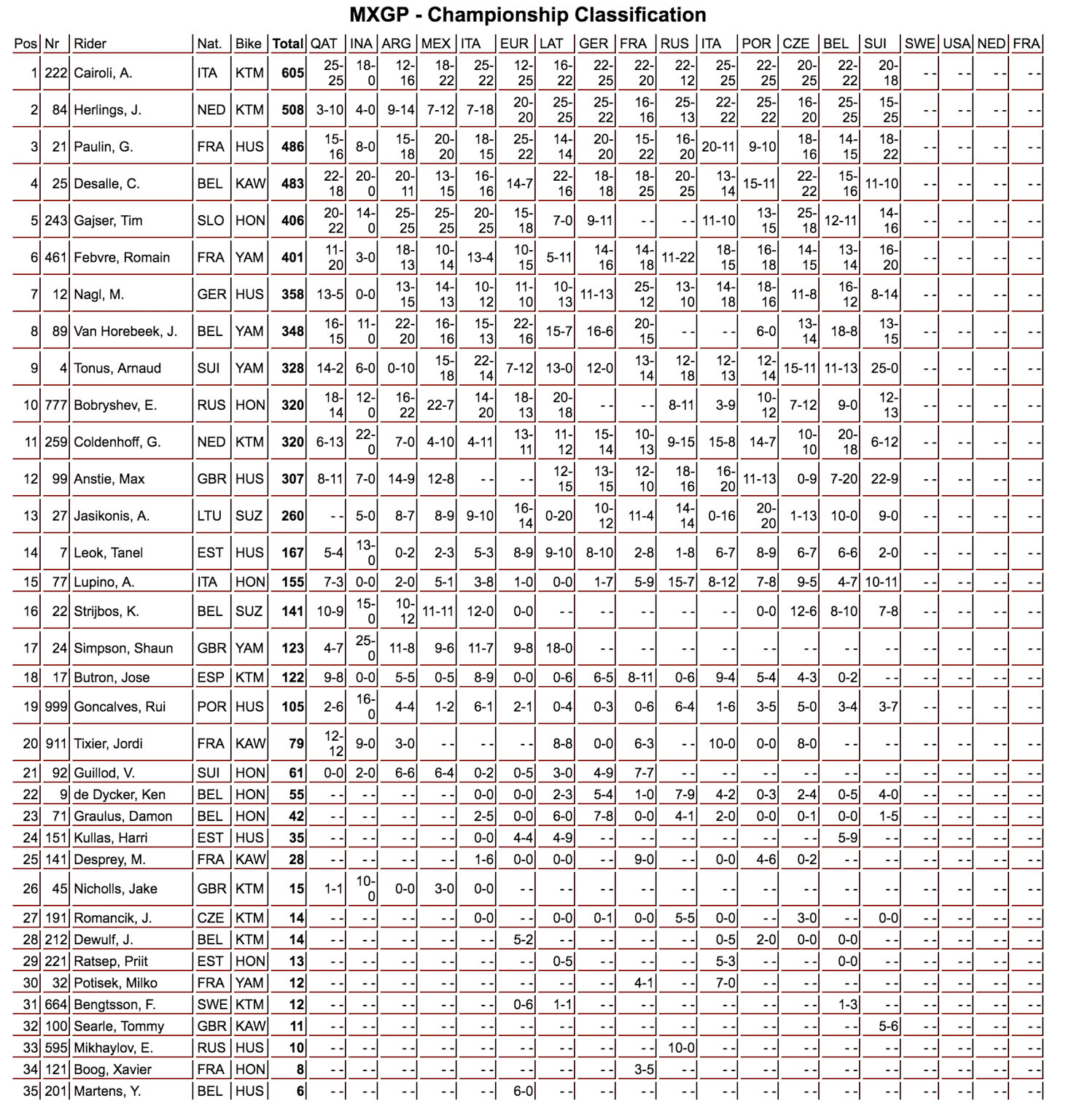 Cairoli was disappointed at not taking the win and said: “It was my fault I didn’t win as I didn’t ride well in the first moto. Although I did the fastest lap of the race on last lap.