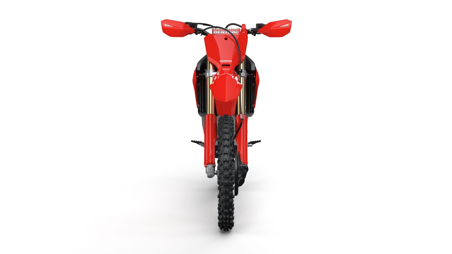 In the major 21YM update – carried out under the development theme of ‘Ultimate Off-Road Weapon’ – the new (2kg lighter) frame and swingarm’s rigidity balance were combined with a tighter chassis geometry and heightened ground clearance to target peak cornering performance. HRC’s engine knowhow delivered strong low- to mid-range torque and the revised decompressor system gave more consistent off-the-bottom driveability. A new hydraulic clutch and comprehensive electronics package ensured that the new bike’s ergonomics made it easier for the rider to go consistently fast. A new sidestand and brush guards completed the update and improved practicality.