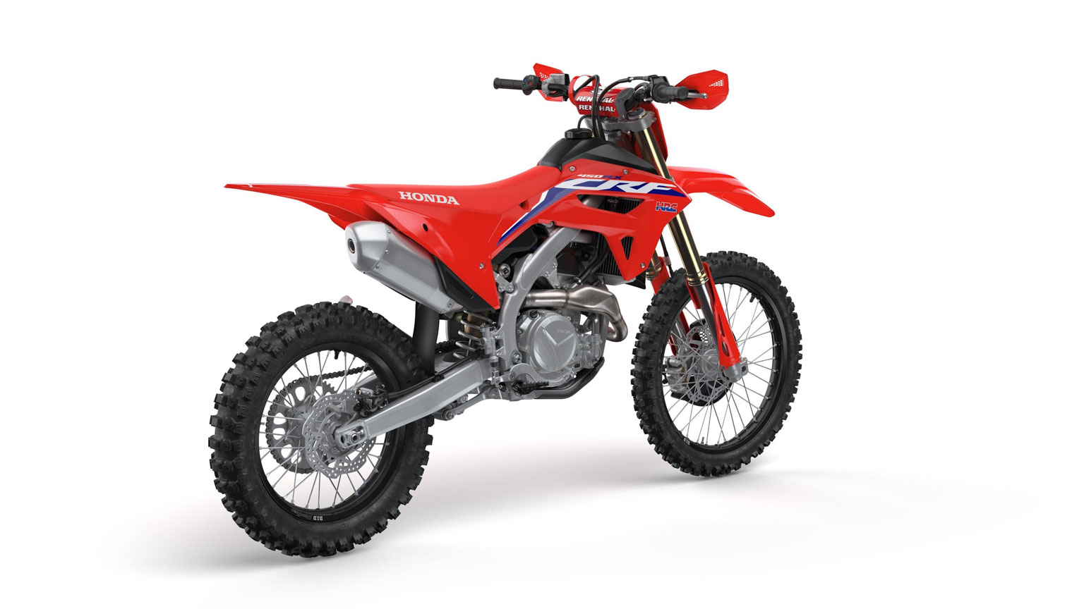 A striking all-red graphic treatment complements the 22YM CRF450RX’s aggressive lines.