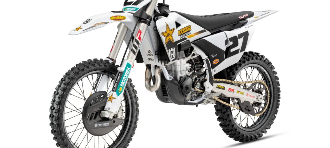 New Rockstar Energy Husqvarna Factory Racing graphics applied using advanced in-mould technology