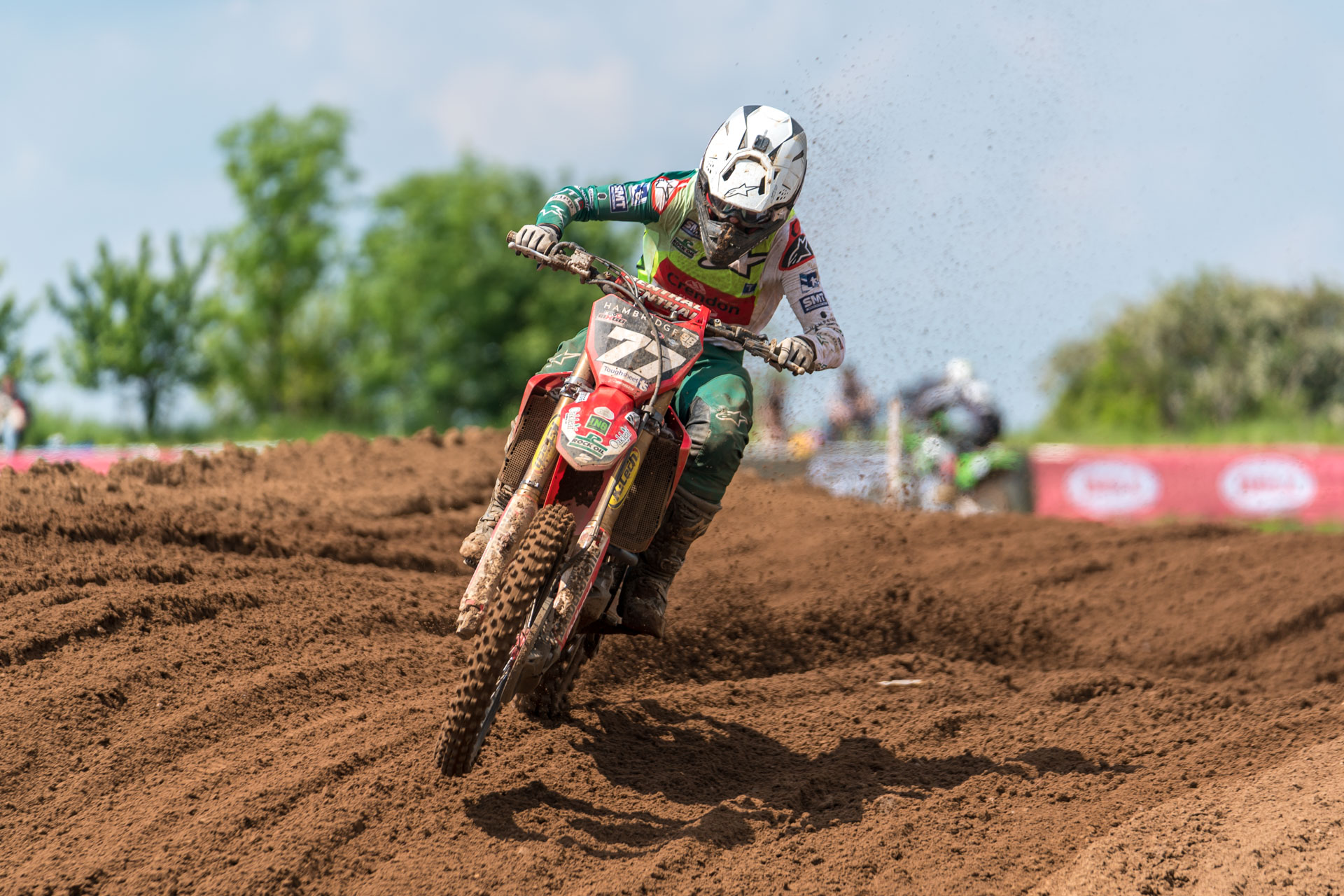 Defending champion Tommy Searle had been feeling ill in the run up to the event but decided to give it his best shot and ride, and then set the fastest lap in MX1 qualifying on his Honda CRF450R. As the temperatures rose rapidly and the track cut up significantly, Searle gated well and held fourth in the opening race but the conditions took their toll and he quickly dropped back to outside the top ten. It was decided the best course of action was for him to withdraw from the event, and focus on recovery for next week’s British championship where he holds the red plate.